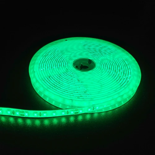 Skab en stemningsfuld belysning med denne grønne 10W/m LED strip på 5 meter, der har en klarere farve end RGB.