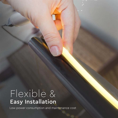 Denne COB LED strip giver et jævnt og uafbrudt lys uden synlige mellemrum, takket være de 320 LED'er pr. meter. LED strippen giver et flot ravfarvet lys, som er ideel til både dekorativ og praktisk belysning.