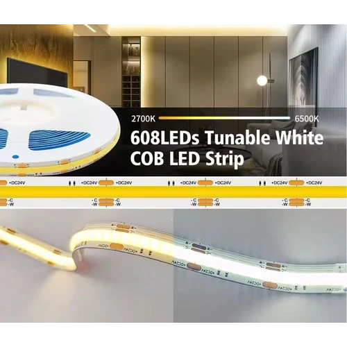 5 meter CCT justerbar COB LED strip med 608 LED'er per meter med høj RA værdi.