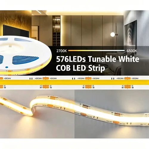 5 meter CCT justerbar COB LED strip med 608 LED'er per meter med høj RA værdi.