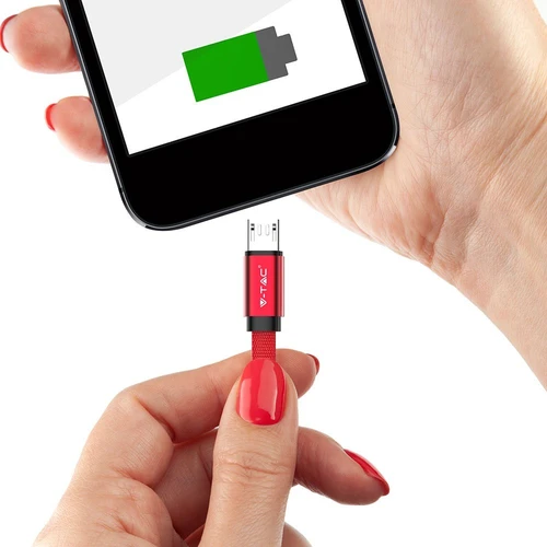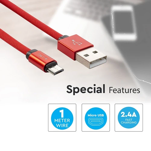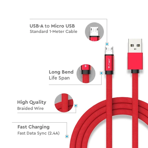 Opdag det alsidige og stilfulde MicroUSB kabel 1m rød - perfekt til både dataoverførsel og opladning med sin unikke flettede bomuldsbelægning.