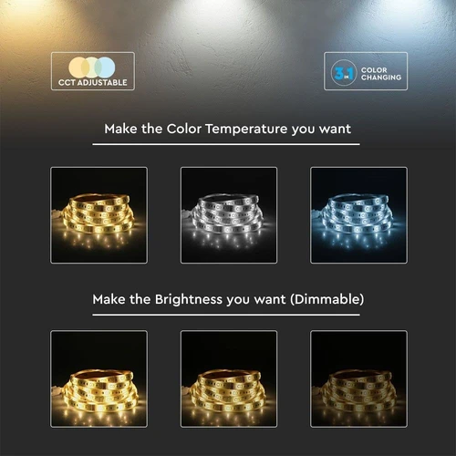 Installation af V-Tac 4W/m RGB+CCT LED strip sæt er enkel og problemfri, hvilket betyder, at du kan fokusere på at nyde dit nye belysningslandskab uden besvær.