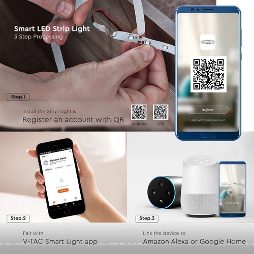 Vælg V-Tac LED strips for at opnå en harmonisk balance mellem stil, funktionalitet og holdbarhed og giv dit rum den transformerende lysoplevelse, det fortjener.