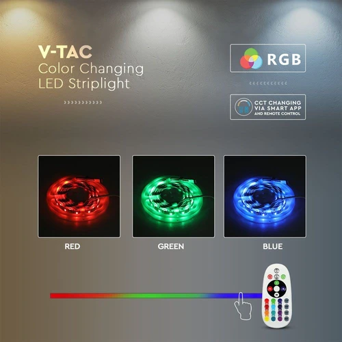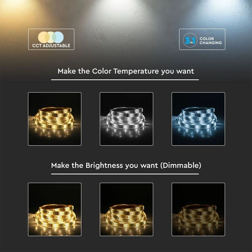 Oplev et alsidigt og kraftfuldt lys med vores 5m 15W/m RGB+CCT LED strip sæt, som bringer farver og stemning til ethvert rum.
