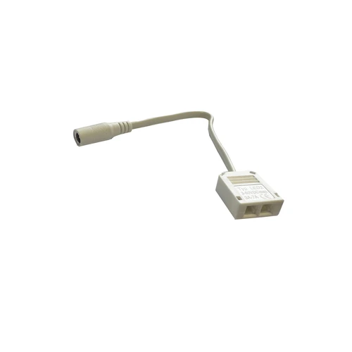 Fordeleren har DC stik i den ene ende, og 2 DuPont stik i den anden ende.