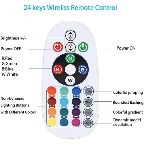 • Fjernbetjening: Juster lysfarver og intensitet trådløst med den medfølgende fjernbetjening.