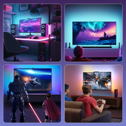 Uanset om du ser film, spiller spil, eller streamer dit yndlingsindhold, vil denne LED strip gøre din oplevelse mere levende og engagerende. Transformér dit hjem til en perfekt biosfære af lys og farver.