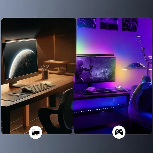 Opgrader din computerskærm med vores CCT+RGB Monitor Light Bar – det ultimative comfort lys til enhver, der elsker farverige vibes.