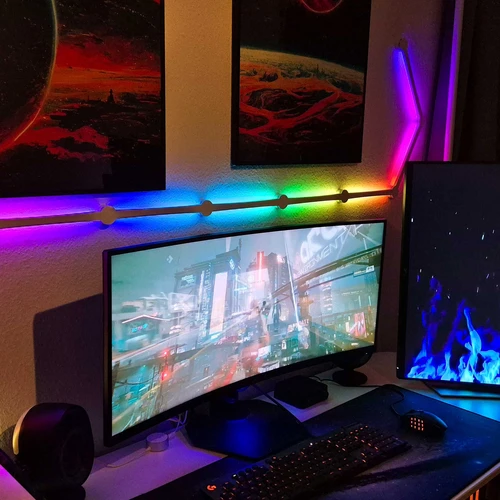 • Modulopbygget Design: Tilpas din belysningsopsætning med lethed ved hjælp af forbindingsmodulerne og RGBIC skinnerne - skinnerne klikkes nemt fast i modulerne.