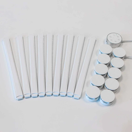 I sættet finder du 9x RGBIC lyskinner, 1x startmodul, 9x forbindingsmoduler og en lille ledningsmonteret controller til styring af lyset.