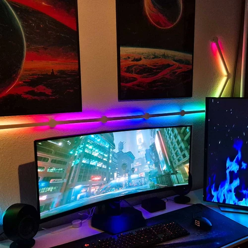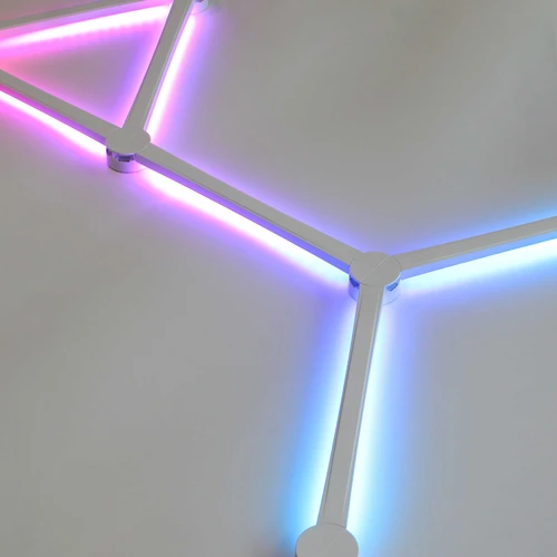 Forvandl dit hjem eller arbejdsplads med Hexa-Light RGBIC komplet sæt. Dette unikke sæt indeholder 6 lysskinner, som kan monteres på væggen for at skabe et iøjnefaldende lysdesign.