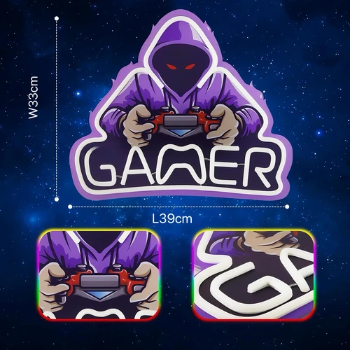 Tag dit gaming setup til det næste niveau med det ultimative Neon gamer skilt! Dette er den perfekte måde at vise din gamer-stolthed på og få dit værelse til at lyse op i ægte RGB-stil.