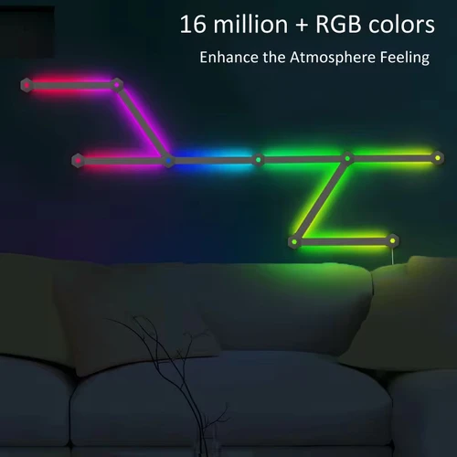 Opgrader din hjemmebelysning med dette stilfulde og moderne sæt. Hexa-Light RGBIC komplet sæt tilbyder en unik belysningsløsning med 9 lysskinner, der kan monteres på væggen. Perfekt til at skabe en dynamisk og stemningsfyldt atmosfære i ethvert rum.