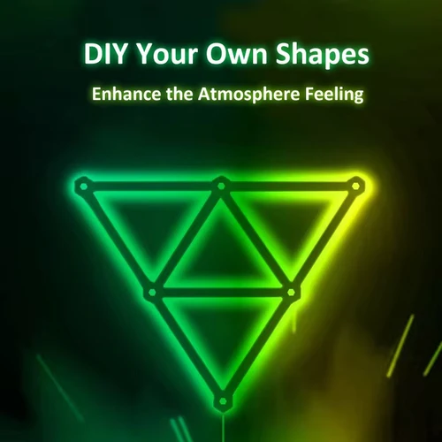 Transformér dit rum med Hexa-Light RGBIC og oplev hvordan lys kan forvandle atmosfæren. Bemærk, at produktet ikke er vandtæt (IP20), og bør derfor anvendes i tørre omgivelser.