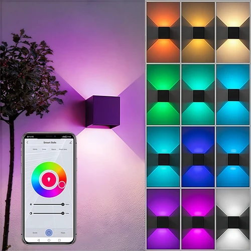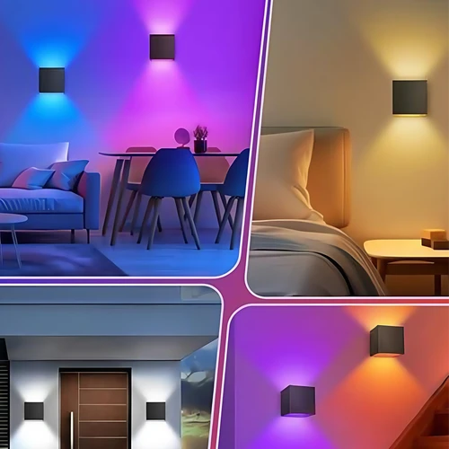 Oplev et stilfuldt lysdesign med LEDlife RGB+CCT CUBIC 6W væglampe, der kombinerer innovation og funktionalitet i en moderne firkantet form, perfekt til både indendørs og udendørs brug.