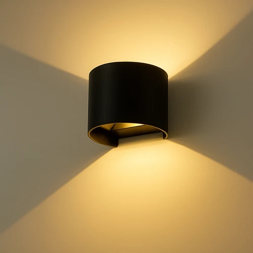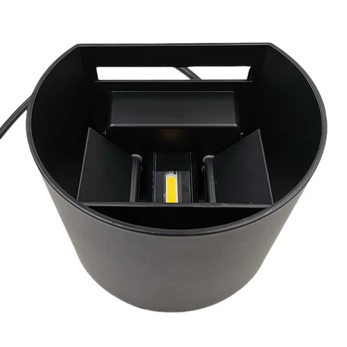 Lampen bidrager ikke blot med effektiv belysning, men også med æstetisk elegance. Den udsender lys både opad og nedad, hvilket skaber en smuk belysningseffekt på vægge og facader.